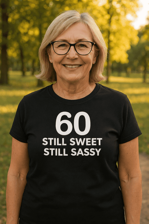 Some people count candles—you count compliments. This fun, confident tee says it all: 60 / STILL SWEET / STILL SASSY. Wear it to the party, the brunch, or anywhere you plan on stealing the spotlight 🎂