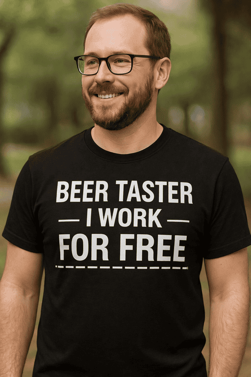 When your shirt says BEER TASTER / I WORK FOR FREE, everyone knows who’s taking one for the team. Walk into the bar, raise a glass, and let the room know you’re here to “test” every round—no paycheck required. 😄