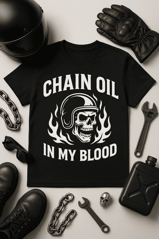 For those who live to ride, this tee says what your engine already knows – you’re powered by chain oil and adrenaline.