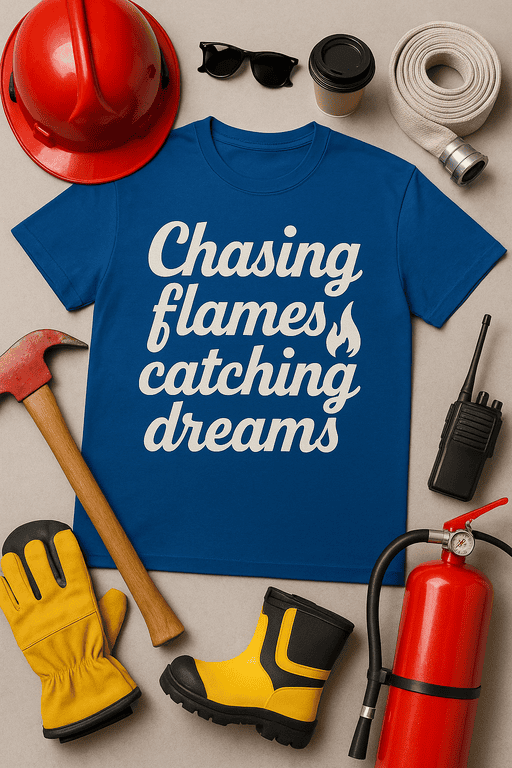 Ready to light up your wardrobe? Our ‘Chasing Flames, Catching Dreams’ T-shirt is for the bold, the brave, and the dream chasers who refuse to settle for ordinary. Crafted from ultra-soft, breathable cotton, this tee combines all-day comfort with a statement that sparks conversation. Whether you’re climbing the corporate ladder or chasing a fire truck (metaphorically—we hope), this shirt keeps your style hot and your ambitions hotter. Get one, wear it loud, and start catching those dreams. Fire sold separately.