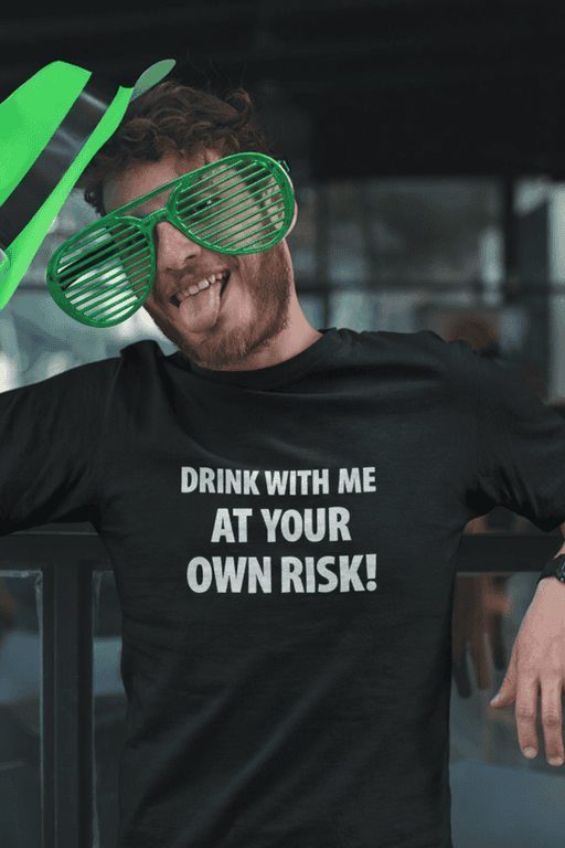 This shirt says it loud and clear: “DRINK WITH ME AT YOUR OWN RISK!” Wear it and nobody can claim they weren’t warned. Great for nights that start with “just one” and end with karaoke and questionable decisions 😅
