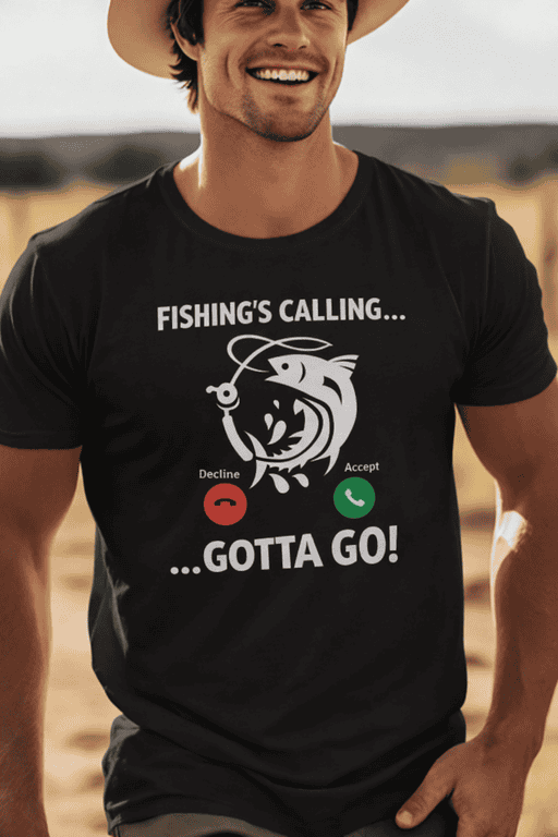 This men’s T-shirt turns your phone screen into the only notification that matters: time to fish. With a fish illustration and Decline/Accept icons, it’s the perfect way to announce you’re “in a meeting” (with the fish) and unavailable until further notice. 😄