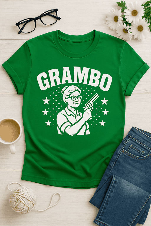 When grandma goes full action hero – meet Grambo. This tee packs heat and hilarity in one cozy cotton package.