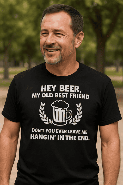 This black tee with a bold white print, beer mug, and laurel branches is basically a toast you can wear. Whether you’re hitting the bar, firing up the grill, or watching the game, it lets everyone know your “old best friend” better not ghost you.