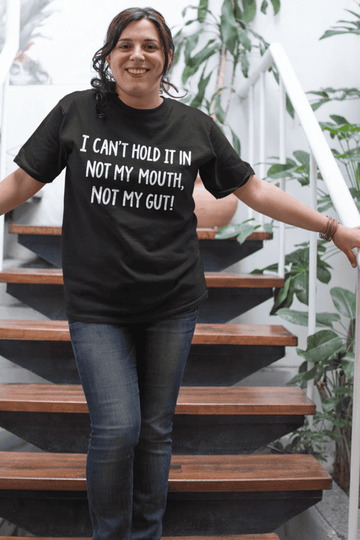 Some people keep it classy. You? You keep it honest. This text-only tee delivers the punchline loud and clear: “I CAN’T HOLD IT IN—NOT MY MOUTH, NOT MY GUT!” One glance, instant laugh, instant icebreaker.