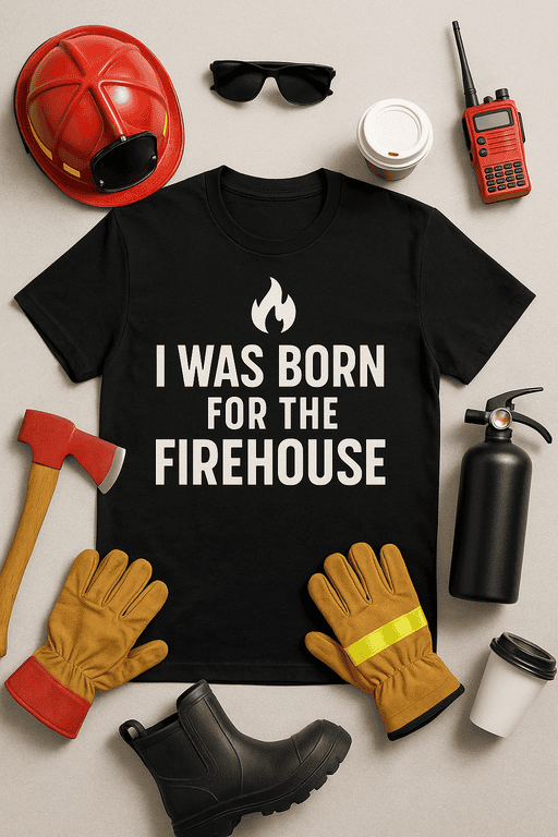 Turn up the heat with our ‘I Was Born for the Firehouse’ T-Shirt – a blazing hot must-have for any firehouse hero or firefighting fan!