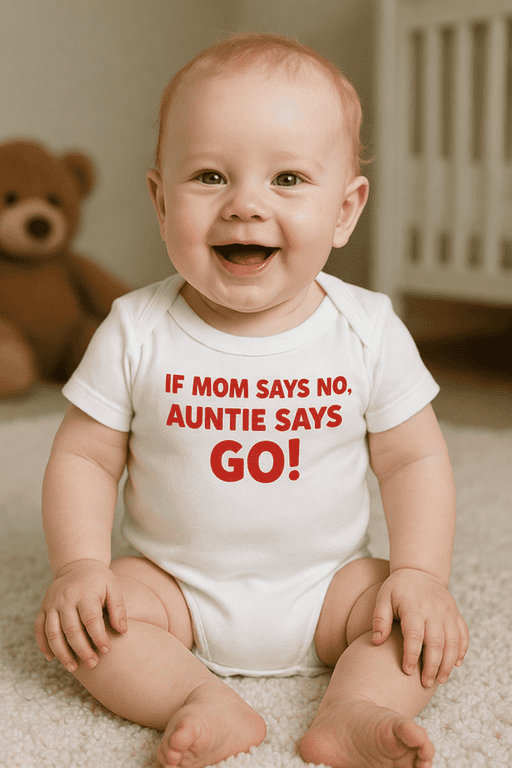 This baby bodysuit is basically a tiny VIP pass to extra cuddles, surprise treats, and “just one more” little splurge. Guaranteed laughs at family get-togethers—and a not-so-subtle shoutout to baby’s favorite partner-in-crime: Auntie!