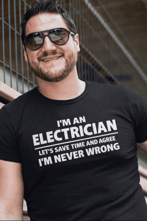 Walk onto the jobsite and end the argument before it starts. This bold, text-only shirt delivers the punchline in three lines: “I’M AN ELECTRICIAN / LET’S SAVE TIME AND AGREE / I’M NEVER WRONG.” From the shop to after-work beers, it’s the ultimate power move—no tools required. 😄