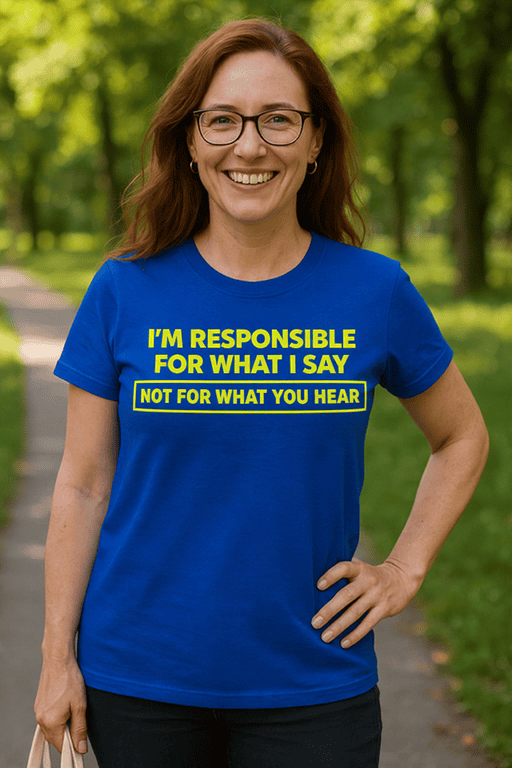 You speak clearly, but somehow people still twist it into a whole new sentence? This text-only unisex tee delivers the ultimate disclaimer: you’re responsible for what you say—NOT for what someone else hears. Perfect for the office, friend hangouts, and family gatherings where “misquotes” are basically a sport. 😂
