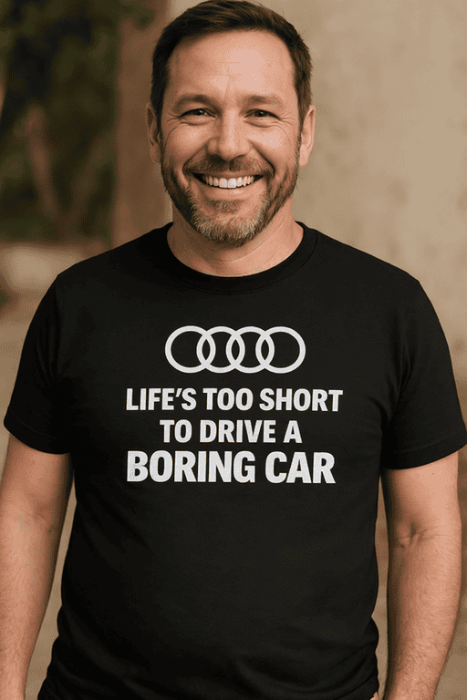 Some people say “take it easy.” You say “watch this.” This black tee with clean white text and an automotive-style logo up top is your everyday reminder to keep it fun—on the road and in your style.