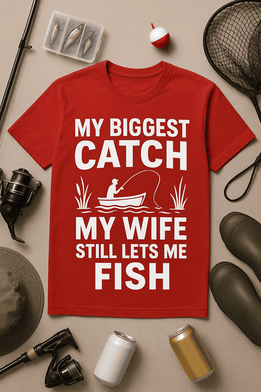 Hooked on fishing and love? This ‘My Biggest Catch My Wife Still Lets Me Fish’ T-shirt is the ultimate gear for married anglers who know they’ve already landed their biggest trophy — their wife. Whether you’re on the boat, at the bar, or just bragging around the barbecue, this tee lets everyone know you’ve got your priorities (and your fish stories) in line. Comfortable, lightweight, and made with premium fabric, it’s the ideal gift for anniversaries, Father’s Day, or just because your wife hasn’t revoked your fishing license yet.