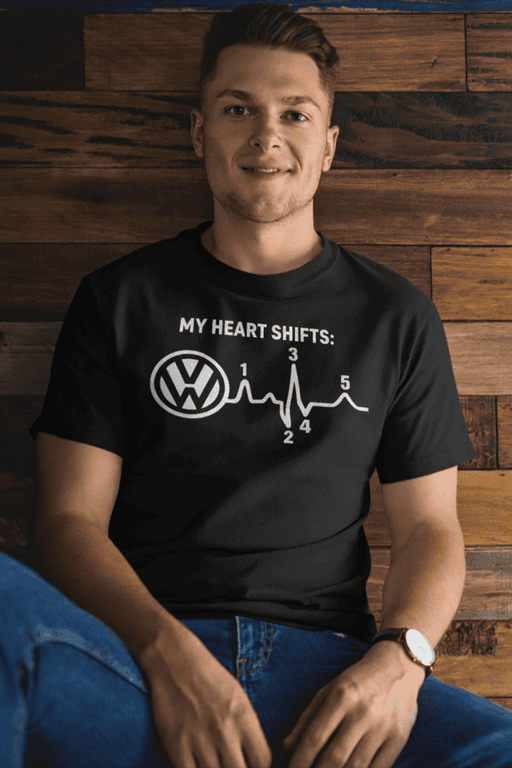 This black tee blends a clean EKG line with the iconic 1-2-3-4-5 vibe—because some of us don’t just drive Volkswagens… we feel them. Every rev is a rush, every shift is a little shot of happiness.
