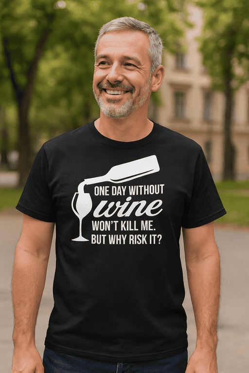 🍷 One day without wine won’t kill you… probably. But why risk it? This tee is perfect for wine-loving guys with a sense of humor.