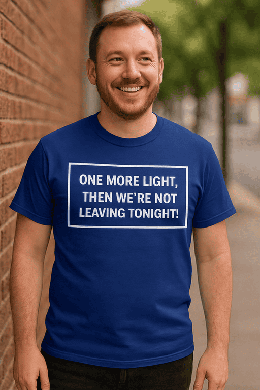 Keys jingling? Coats on? Not on your watch. This tee delivers the ultimate “we’re staying” message loud and clear—because the best stories always start with “one more.” 😄🍻