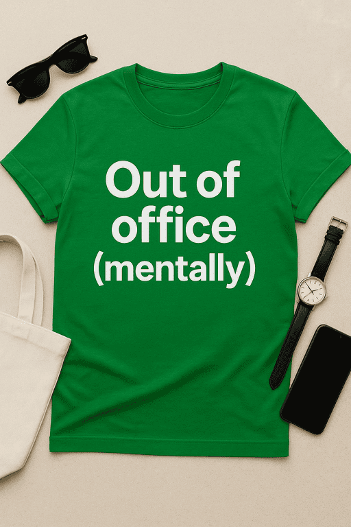 Introducing the ‘Out of Office (Mentally)’ T-Shirt – your new favorite uniform for zoning out in style. Whether you’re stuck in a Zoom meeting or pretending to listen at a staff briefing, this comfy shirt does the talking for you. Made from ultra-soft cotton and designed with a relaxed fit, it’s perfect for casual Fridays, weekend getaways, or just mentally skipping town. Let everyone know that while your body may be in the office, your mind is already on vacation!