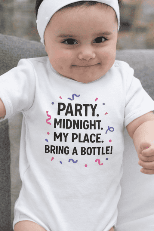This funny baby bodysuit says what everyone’s already thinking during those after-dark feedings. With colorful confetti details, it’s made for the little VIP who turns every midnight bottle into a full-on living-room party.