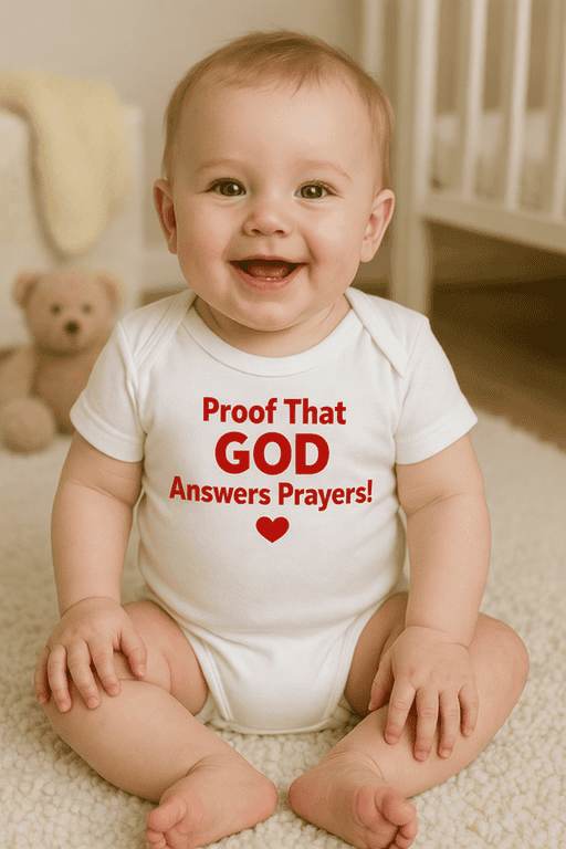 God heard the prayers… and here you are. This baby bodysuit with bold text (and a sweet heart icon underneath) is an adorable way to celebrate your little blessing and make everyone smile during those first visits and photos. 📸