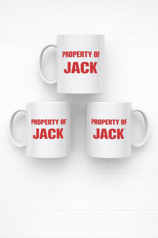 This mug makes it official with a bold red “PROPERTY OF JACK” on the front—because your “just one sip” coworkers can read. Clean, simple, and hilariously possessive in the best way.