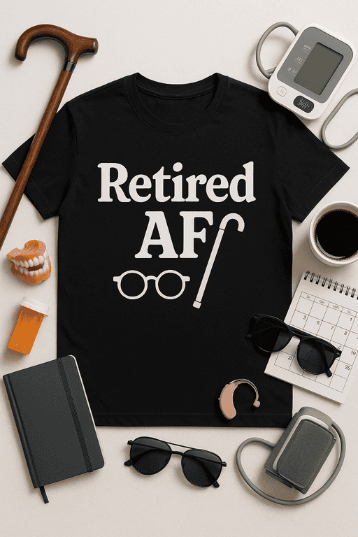 Kick back in style with our ‘Retired AF’ tee — because you’ve earned the right to do absolutely nothing.
