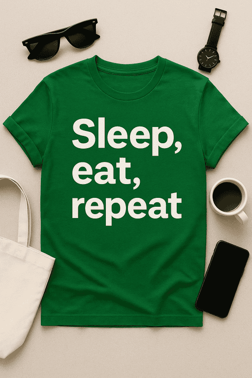 Designed for legends of lounging and heroes of hunger, the ‘Sleep, Eat, Repeat’ T-shirt is your new go-to uniform for doing absolutely everything… or absolutely nothing. Made with ultra-soft, breathable cotton, this shirt feels like your favorite nap and looks stylish enough for brunch. Whether you’re conquering the couch or dominating snack time, embrace your endless loop in comfort and humor. Trust us, your to-do list never looked so cozy.