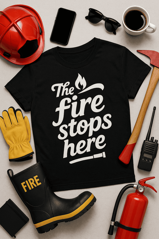 Quench the chaos with style—this tee says it all: The fire stops HERE.