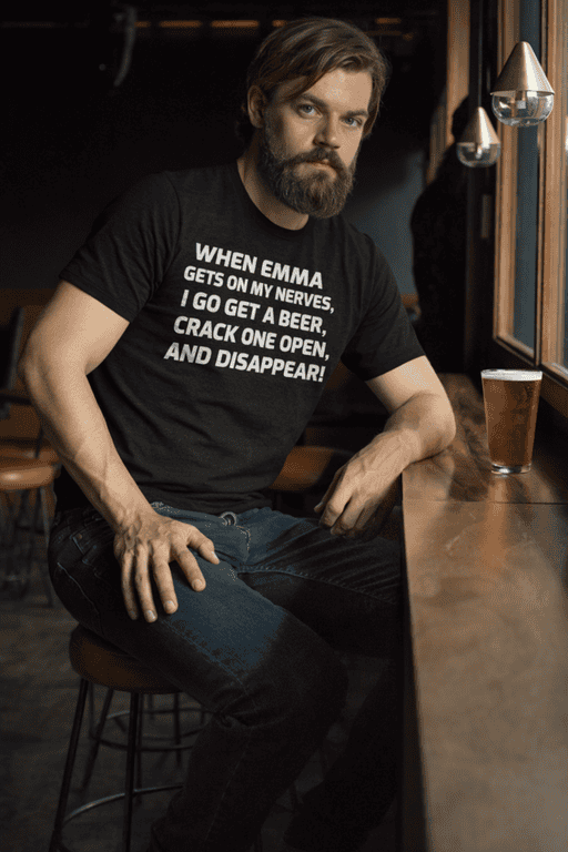 This text-only tee says what you’re thinking without you having to say a word. When Emma starts pushing buttons, you’re not arguing—you’re cracking a beer and disappearing like a legend.